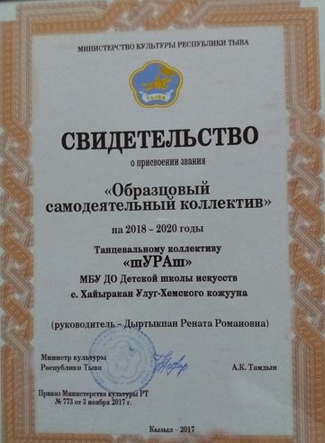 Руководитель: Дыртыкпан Рената Романовна – преподаватель высшей квалификационной категории класса хореографии МБУ ДО Хайыраканской «Детской школы искусств».